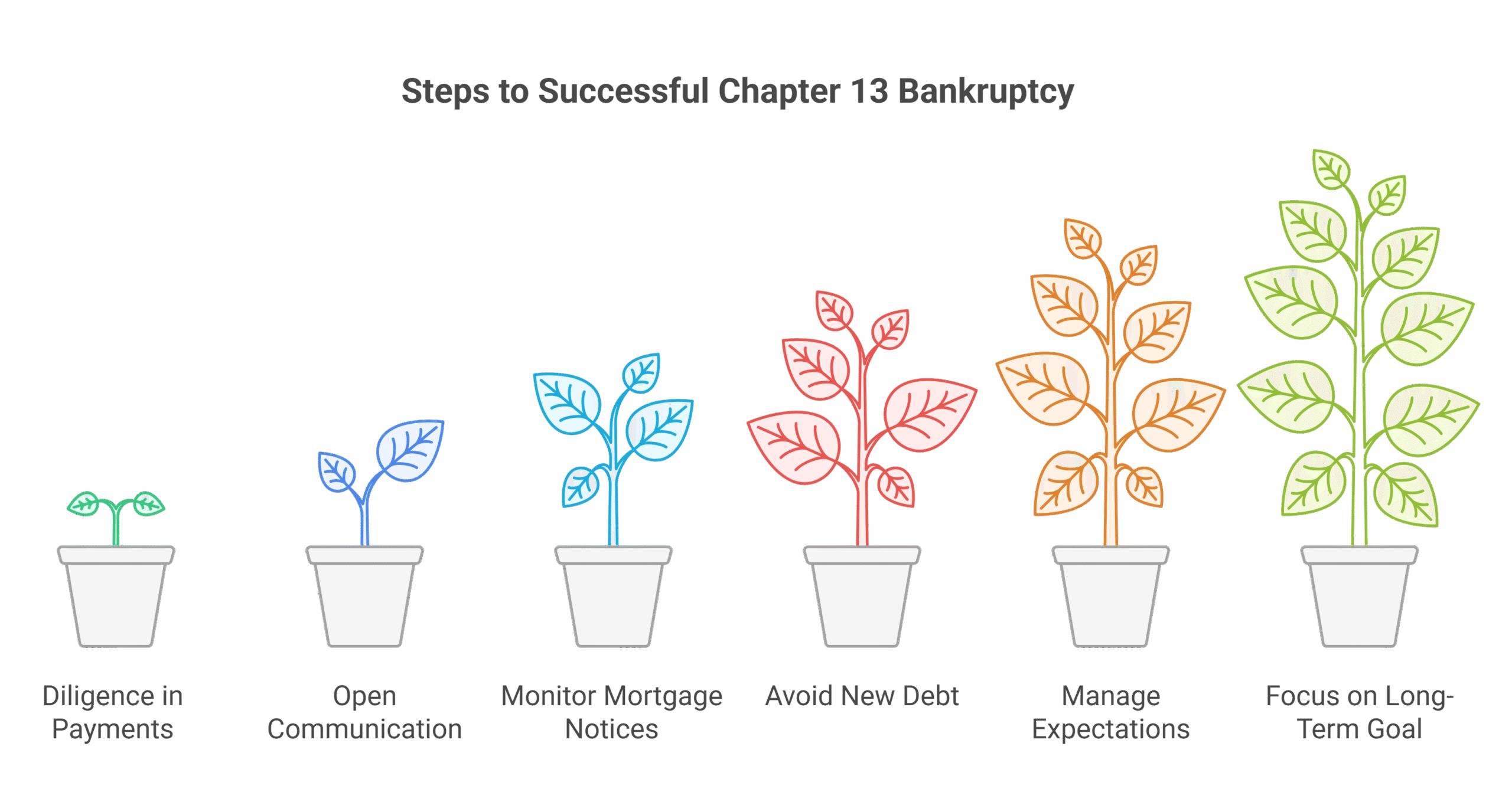- Diligence in Plan Payments: Make every payment to your Chapter 13 Trustee on time. Consistency is paramount.